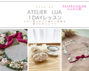 リボン刺繍で可愛い小物をお作りいただける1dayレッスン❤